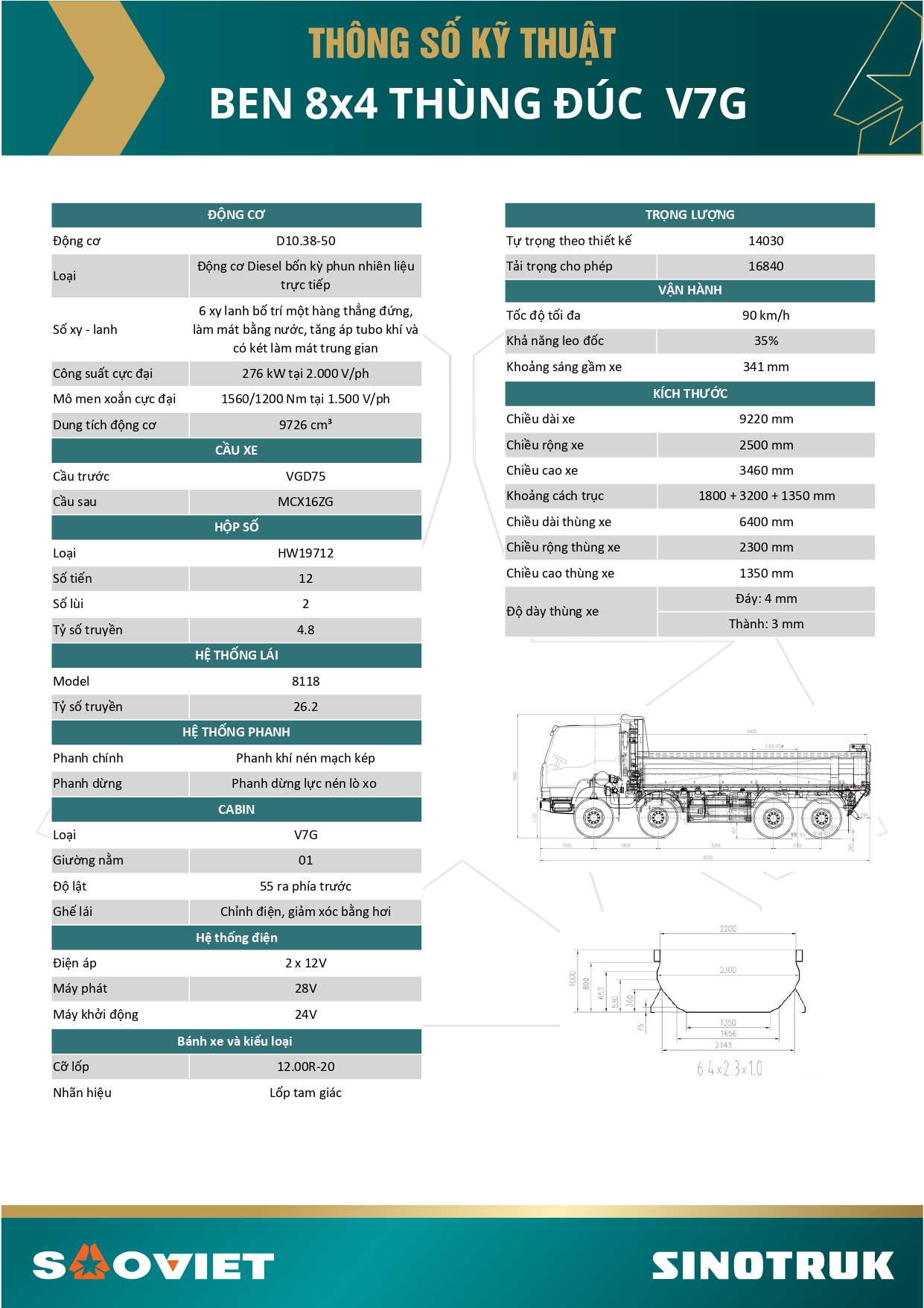 Chi tiết dòng xe Ben 8×4 thùng đúc VG7  – Dòng xe đầu kéo đời hoàn toàn mới, được nhập khẩu và phân phối độc quyền bởi Sao Việt.