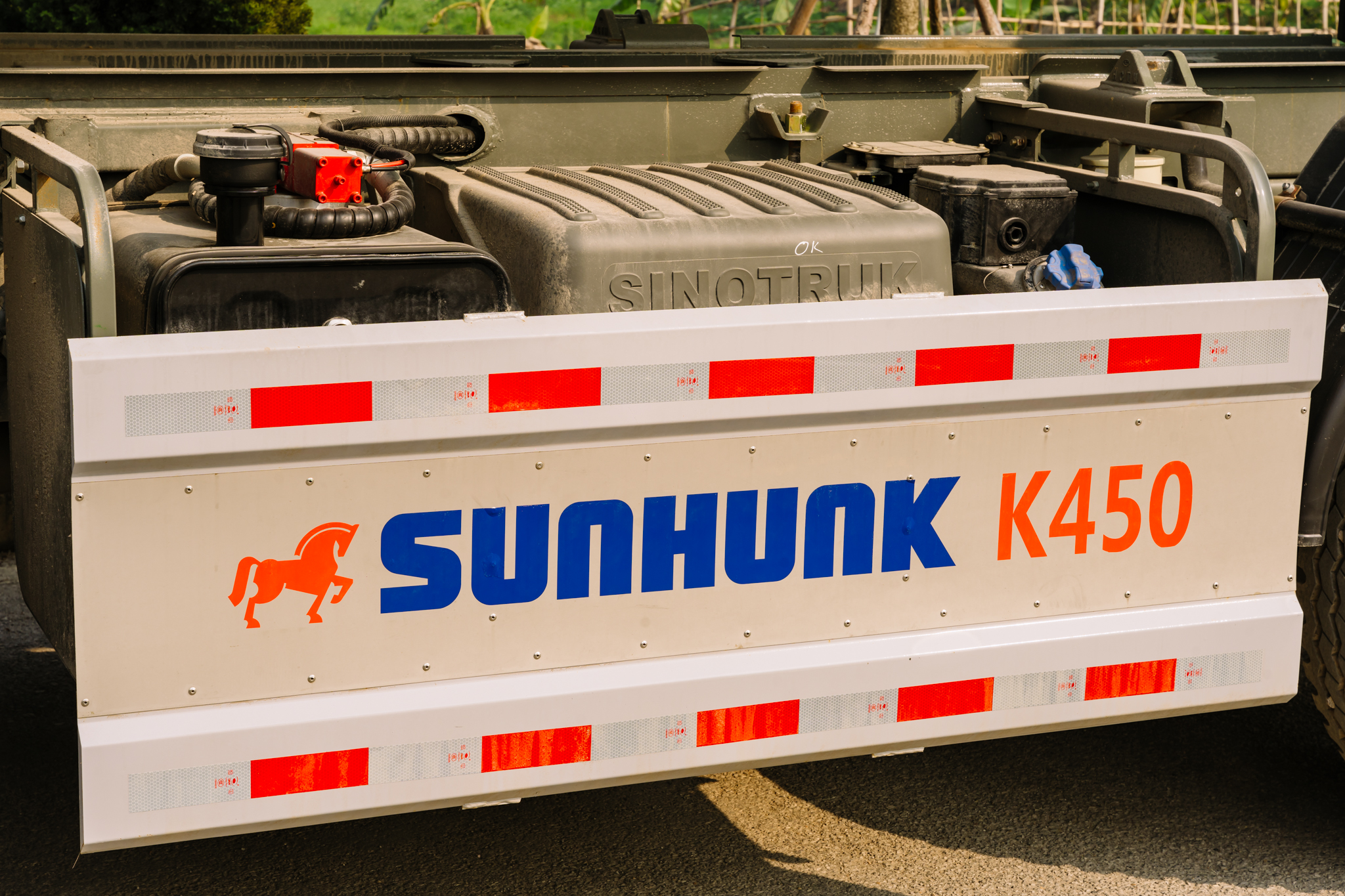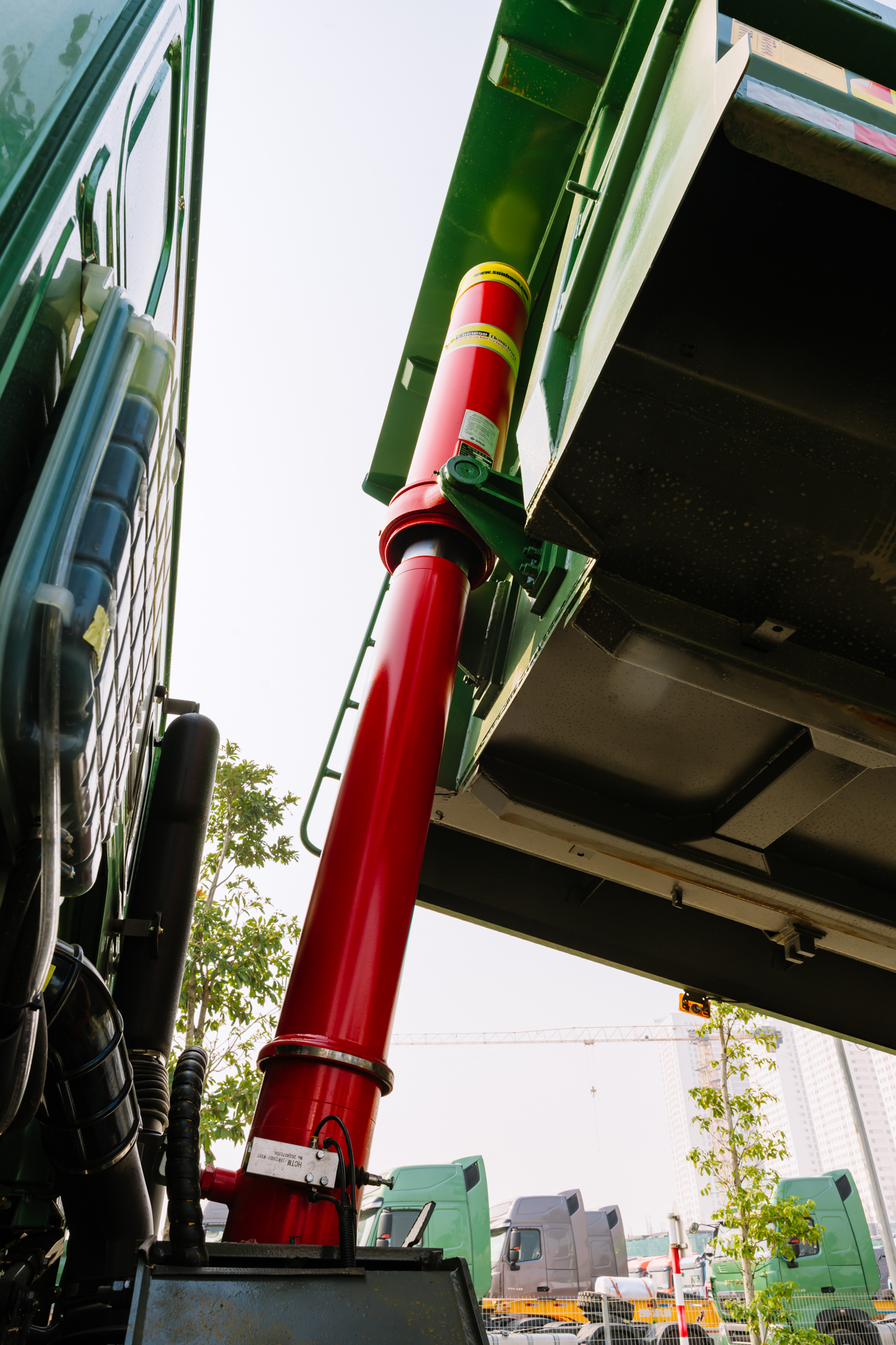• Khung gầm được gia cố chắc chắn, đảm bảo không bị vặn xoắn khi ben hàng ở địa hình nghiêng.