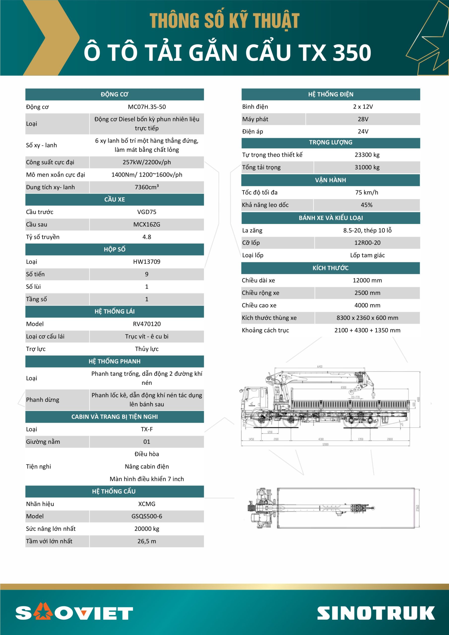 Chi tiết dòng xe Ô tô tải gắn cẩu – Dòng xe đầu kéo đời hoàn toàn mới, được nhập khẩu và phân phối độc quyền bởi Sao Việt.