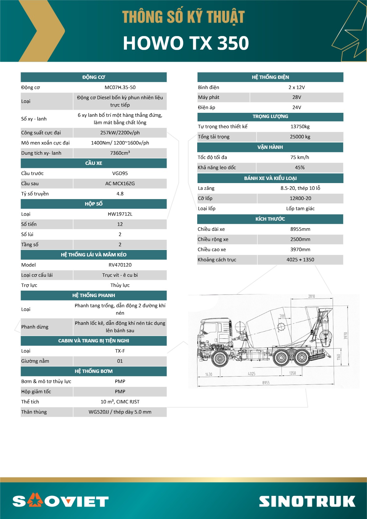 Chi tiết dòng xe trộn Howo TX 350 – Dòng xe đầu kéo đời hoàn toàn mới, được nhập khẩu và phân phối độc quyền bởi Sao Việt.